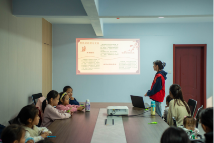 活动现场趣味十足,志愿者们通过生动形象的PPT课件,用卡通动画、实物图片结合通俗讲解,带孩子们穿越千年时光——从剪纸的起源传说,到窗花、喜字、生肖等经典纹样的寓意,再到剪刀、红纸的选择技巧,一个个知识点让孩子们听得目不转睛。讲解结束后,实操教学正式开始,志愿者手把手示范对折、描线、裁剪的关键步骤,从简单的三角形、圆形教起,再到寓意吉祥的小灯笼、小兔子、小花、“春”字图案。孩子们握着小剪刀认真裁剪,一张张普通的红纸就在指尖上变成了灵动可爱的作品。
