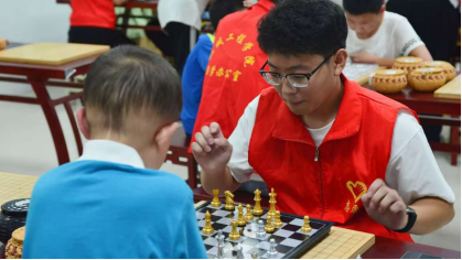 活动伊始,志愿者带领孩子们走进文化展厅,在玻璃柜里的手工艺品与童趣画作前,志愿者详细讲述了每件作品的由来,让文化的种子在孩子心中慢慢发芽。棋桌前,孩子抬手落子的瞬间带着超出年龄的果断,原是志愿者来传递陪伴,却被孩子们的棋艺天赋狠狠“惊艳”。活动尾声,大家一同玩转陆地冰壶,孩子专注推壶、志愿者默契刷冰。在团队协作的呐喊与欢笑中,运动的激情与互助的温暖在此刻交融。